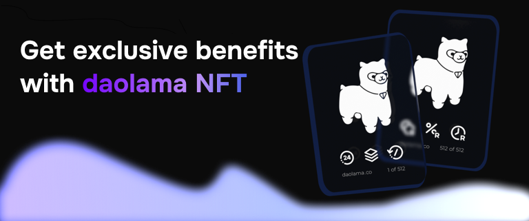 Owning DAOLama NFT gives you reduced fees, extended loan terms, token farming and access to exclusive functionality.
